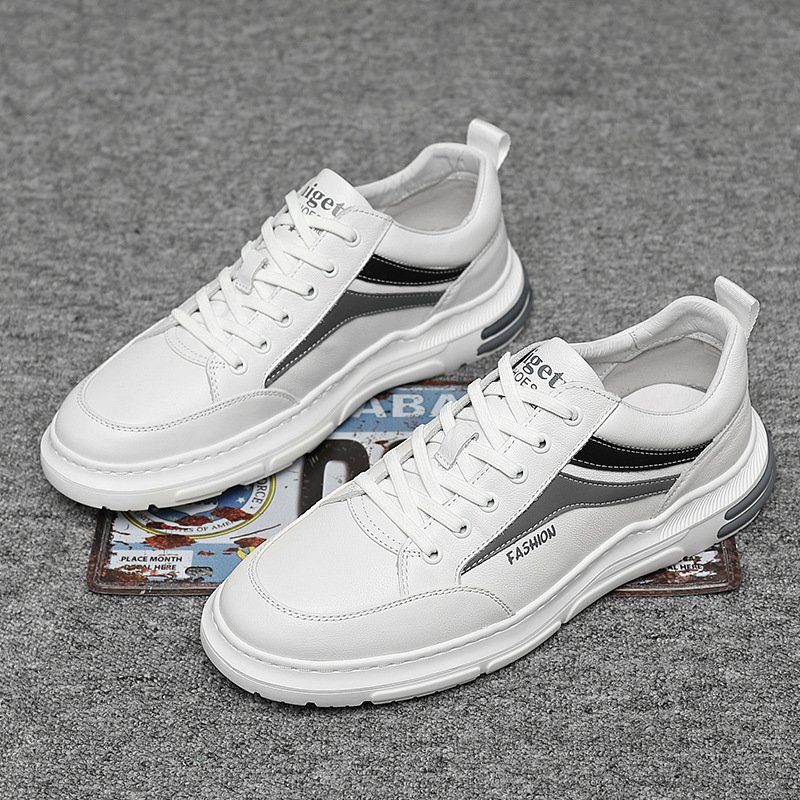Little white shoes men's 2022 autumn new flat bottom shoes men's leather high top men's casual men's shoes trend