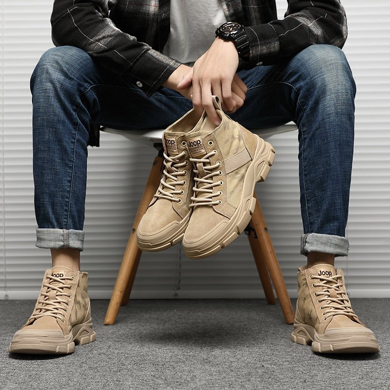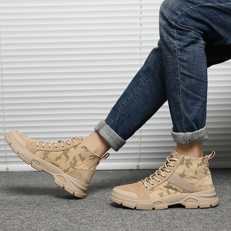 2022 autumn new mid-top high-top leather shoes men's shoes trendy shoes short boots leather boots military boots tooling Martin men's boots